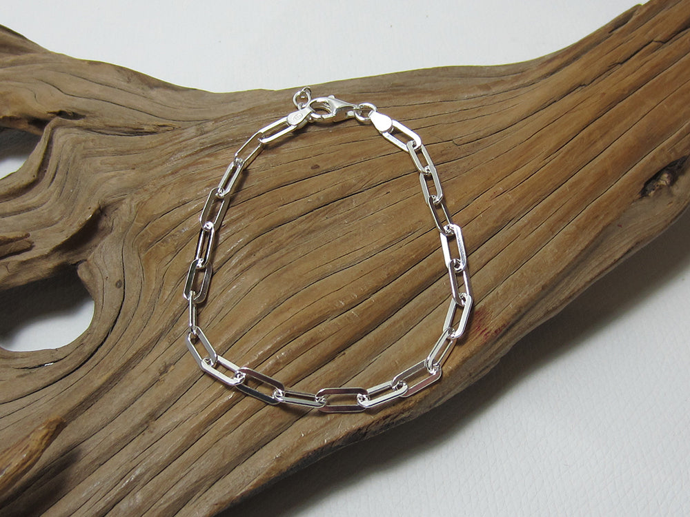 This clean-edge link bracelet can be worn on it's own or layered. Each link is around 9mm long and the bracelet is 18cm long in total, it has a 2cm extender chain which can be easily removed if not required.
